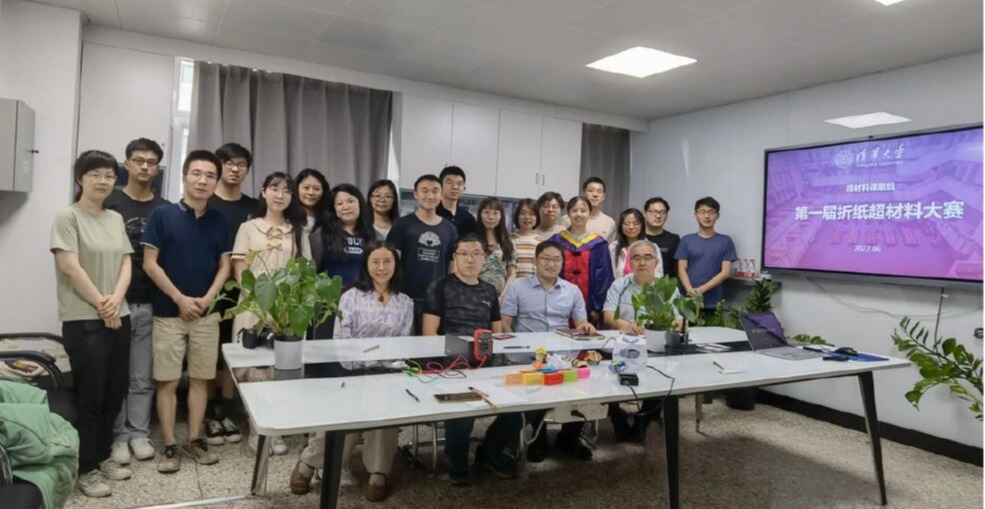2022年6月,清华大学第一届折纸超材料大赛,前排右1为周济