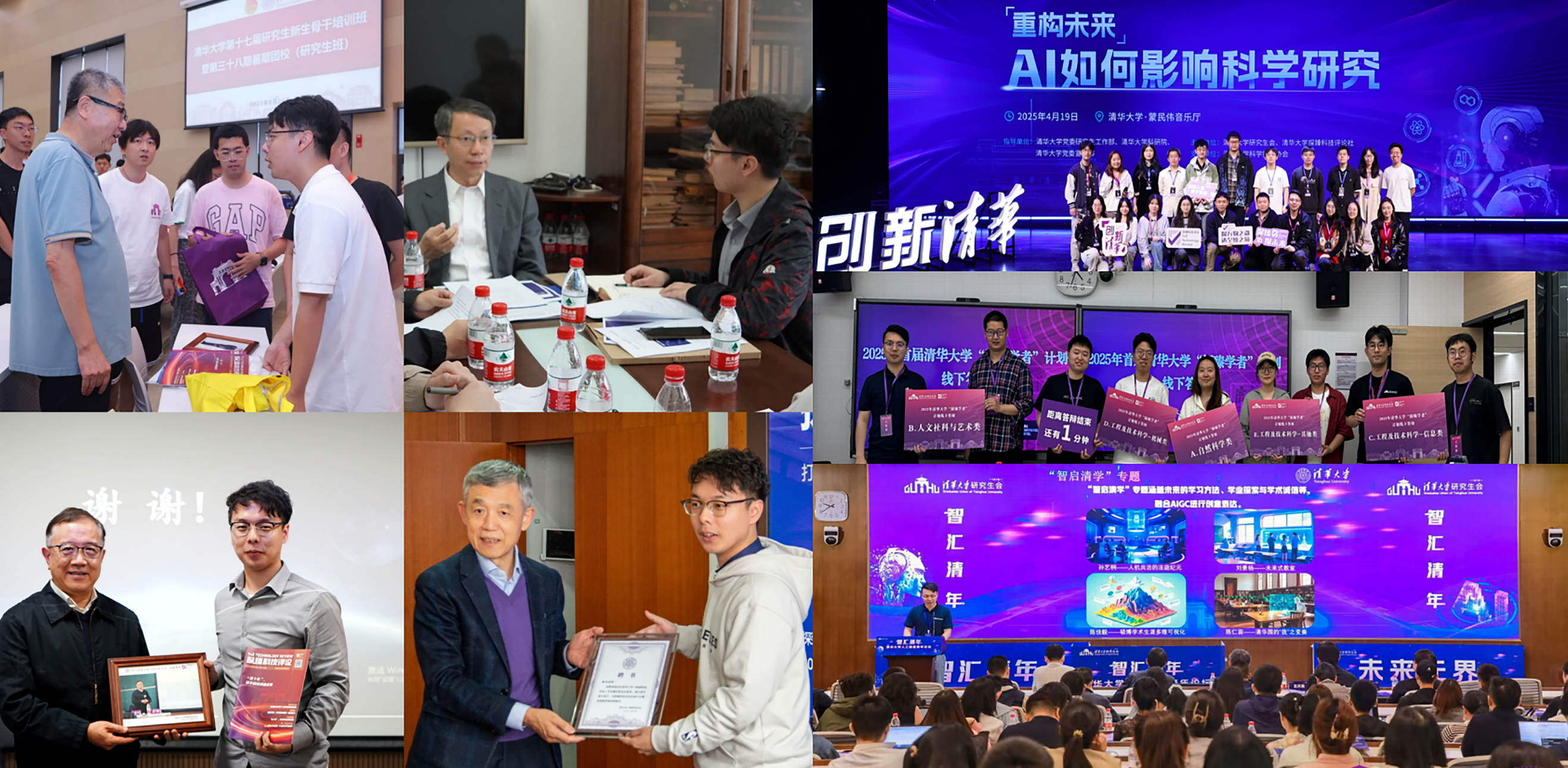 图4 探索“大小通专”学生学术交流平台体系建设:采编院士与专家学者、举办首场创新清华品牌活动、举办首届“探臻学者”答辩评审会、举办首场人工智能交叉博士生论坛