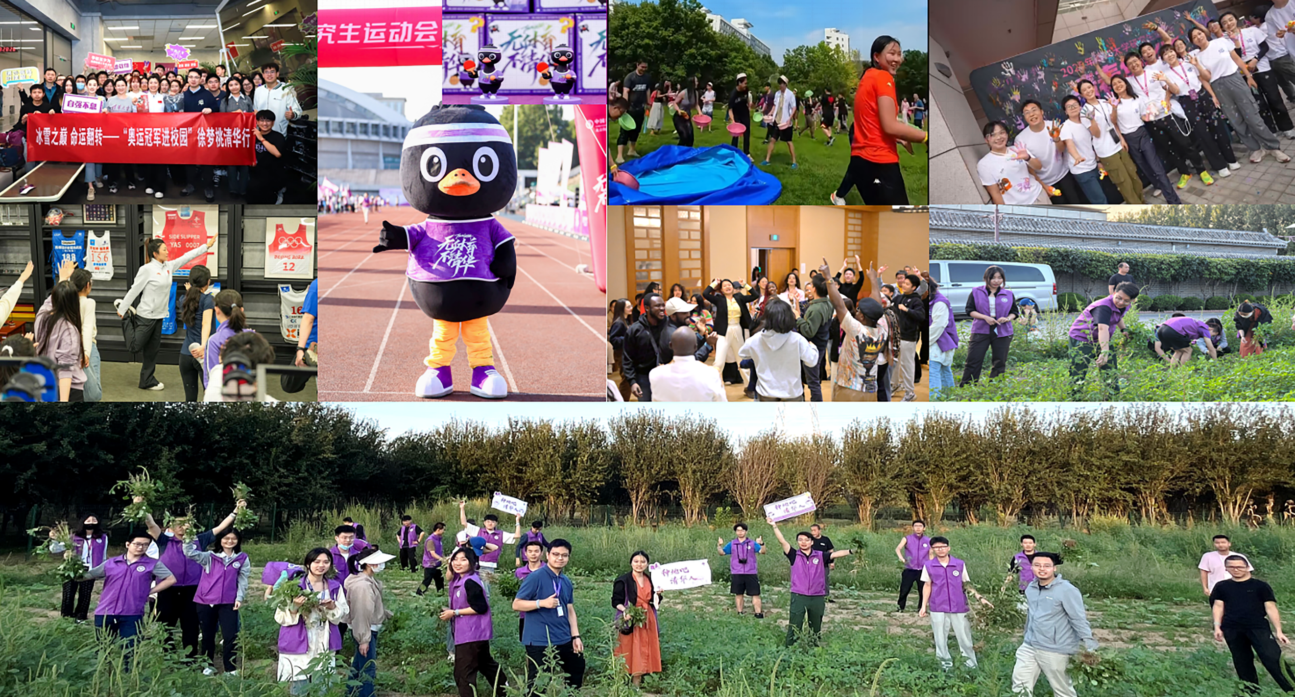 为了更好地激发同学们的运动热情和体育精神,他与小伙伴们积极邀请石宇奇、徐梦桃、任子威、张家齐、冯雨等羽毛球、滑雪、跳水、游泳领域的奥运及世界冠军走进清华园传授运动技巧,场场满座。在2025研究生运动会上,恢复了具有解压和趣味特性的缤纷泡泡跑和彩粉跑,并引入彩水跑的运动形式,吸引了全部院系的3000余名师生参与。面对部分体育俱乐部“低活力”和研究生体育课资源有限的现状,他积极联络来自北体、首体的高水平教练,有效提高研究生体育教学体验课总量至往年的192.3%。