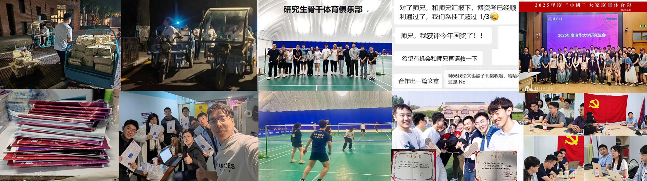 从兴趣驱动到情感认同,这无疑是服务同学需求的更高境界,但也要用小事引发强烈的情感认同。在倡导绿色骑行工作期间,他结合校庆节点,与保卫处老师一同推广美团单车免费骑行卡,还积极为与大家见面的清华定制小紫车安装2000余份“爱祖国,爱清华”校庆旗,引发广泛反响和爱国荣校之情,同学们自发在小红书发帖超过200余篇,在微信朋友圈刷屏,相关图文阅读量突破10万。面对2024年开学极端暴雪以及学期中的极端大风天气,他第一时间发起落叶清扫、断枝清障、扫雪铲冰等专项志愿服务行动,发布志愿倡议书,600余名研究生同学自发报名,参与校园维护治理,累计清扫200余袋落叶(约1.25吨)和校园路段积雪。