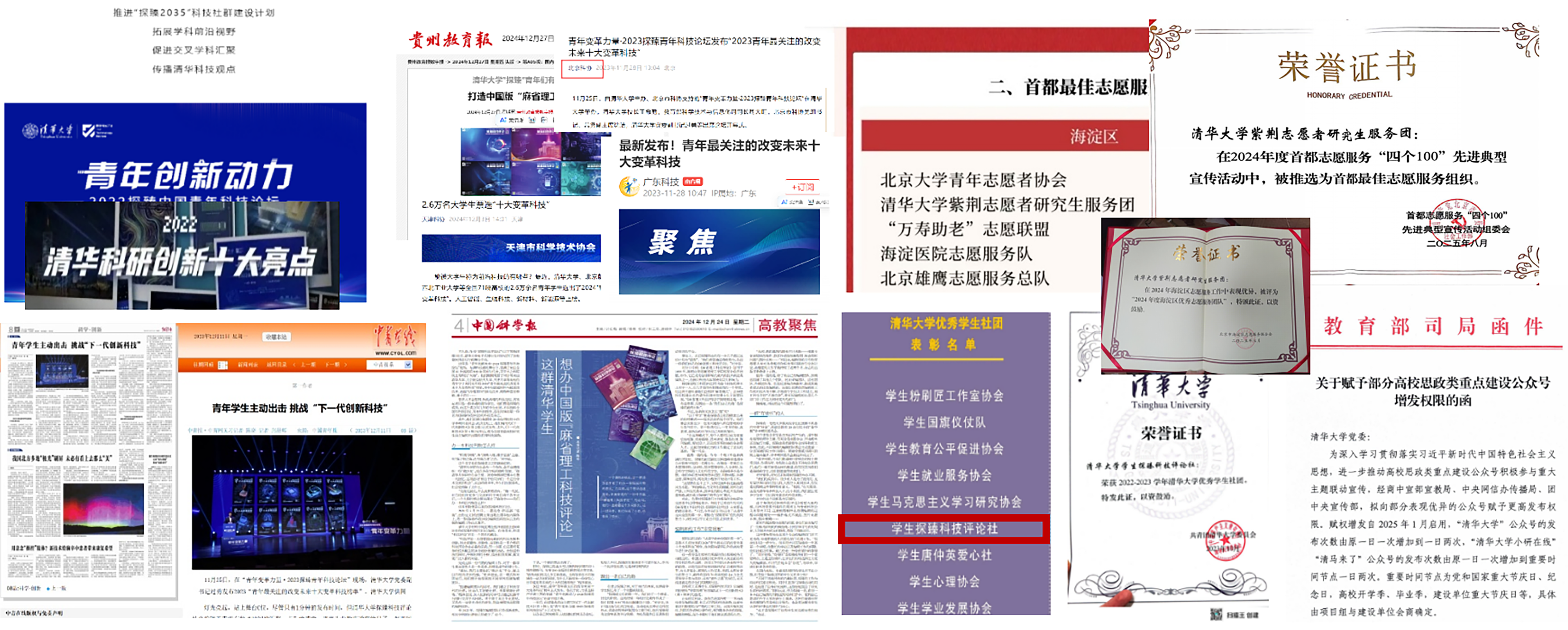 就如何了解青年最关心的前沿科技,又如何让更多人关注到中国青年的科技声音的问题,程泽堃关注到很多品牌的出圈背后离不开“榜单”的发布,例如大家可能先关注到“35岁以下科技创新35人(TR35)”,才发现背后实际上是MIT科技评论运营的榜单。作为研究生,他在思考是否也能发起一个科技榜单来反映青年对前沿变革科技的洞察情况。他与团队积极探索科技榜单的评选工作,发起了首个“青年最关注的改变未来十大变革科技榜单”,第一年(2022年)的科技榜单投票主要是覆盖校内的8000余名研究生群体;在第二年(2023年),他推动了科技榜单在北京卫视“科学跨年夜”节目上发布,观看人数达4000万人次。