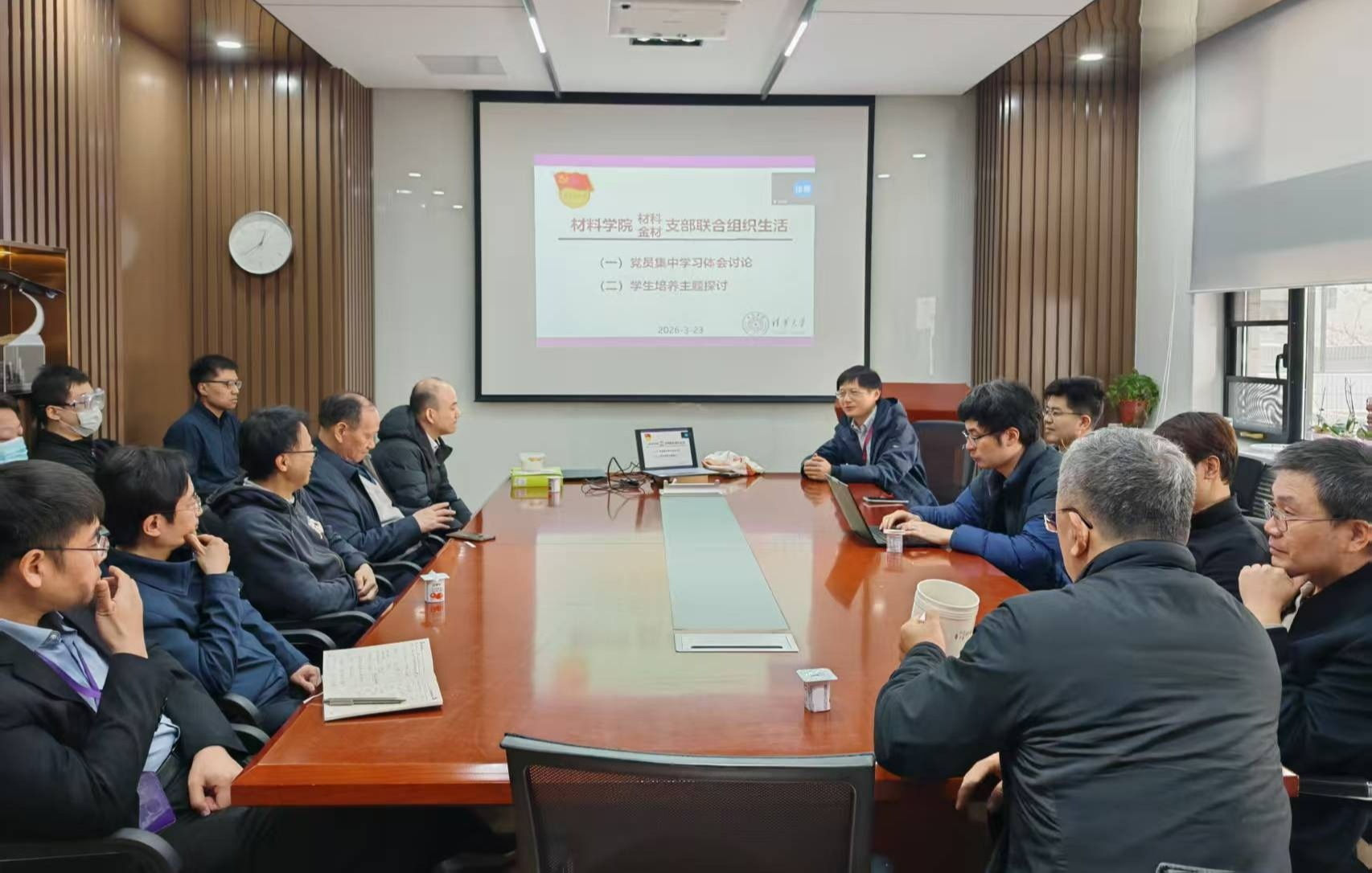 3月23日,材料学院材科党支部和金材党支部在逸夫技科楼C202联合开展组织生活,活动紧扣本学期全校第一次党员集中培训学习要求,聚焦 “十五五” 开局与学生培养核心议题开展专题研讨,部分党员通过线上方式参会。与会党员深入研学全国两会精神与“十五五”时期关键发展任务,围绕人才培养改革、人工智能赋能教育等议题充分交流、深化研讨,切实凝聚思想共识、汇聚育人合力。